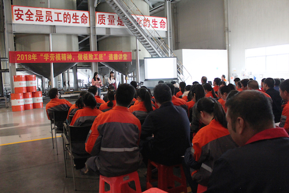 為貫徹落實(shí)習(xí)近平總書記關(guān)于“弘揚(yáng)勞模精神和工匠精神”的重要指示精神,傳播向上向善正能量,公司黨支部于2018年11月30日在調(diào)合車間開展“學(xué)勞模精神,做極致工匠”道德講堂活動。